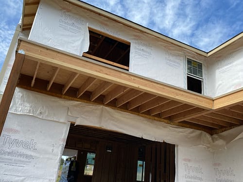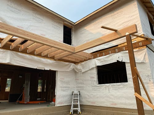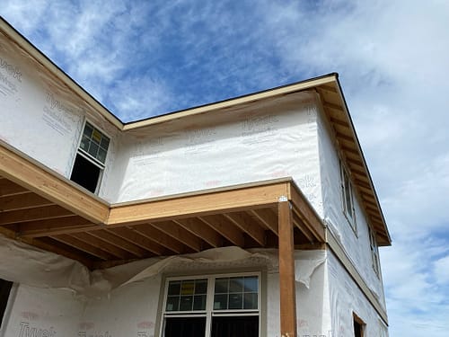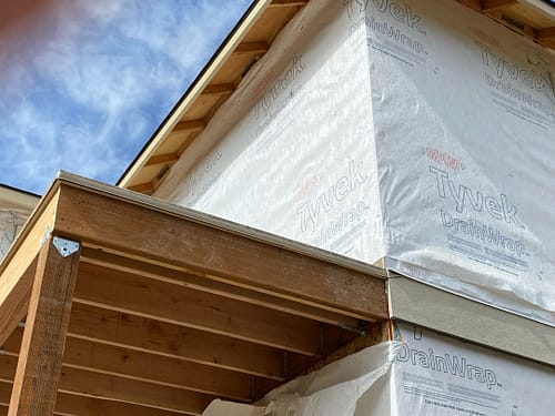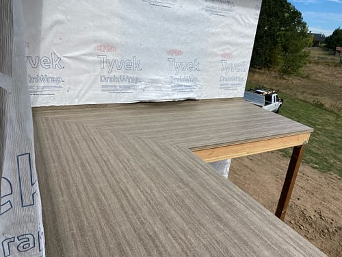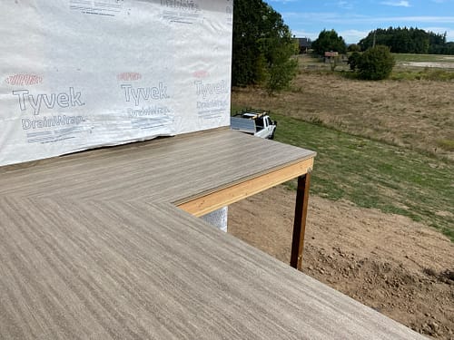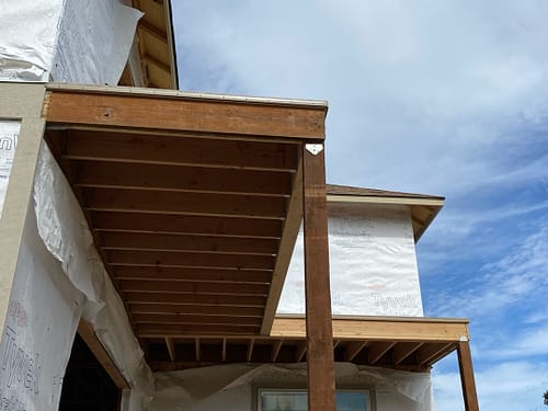 Once the frame was in place, we installed the plywood sheathing as the deck substrate. This was followed by a detailed waterproofing process. We used a vinyl deck membrane to create a fully waterproof surface that protects the framing below from moisture and rot.